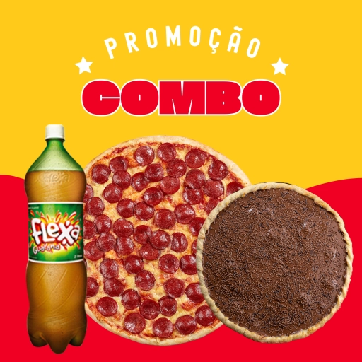 Pizza salgada 35 cm + pizza doce 25 cm + refri 2L